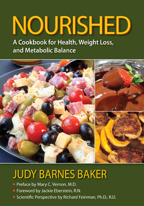 I am very pleased to say that my new book is going to make its belated appearance soon. If you have been following this saga, the first thing you may notice is that the title has changed. After my interview with Jimmy Moore http://livinlavidalowcarb.com/blog/the-llvlc-show-episode-469-judy-barnes-bakers-almost-ada-approved-low-carb-diabetic-cookbook/10714, one of my recipe testers contacted me to say that when she searched for the original title, Eating on the Edge, something totally different came up—a line of low-fat products and a book that had just come out. To avoid confusion, I changed my title to what you see above. The silver lining is that I like the new title better. (One person told me Eating on the Edge sounded like going to the jungle to eat bugs and worms, while Nourished sounds warm and comforting.) We are planning to celebrate the launch with a promotional event including some really great prizes. Details will be forthcoming.